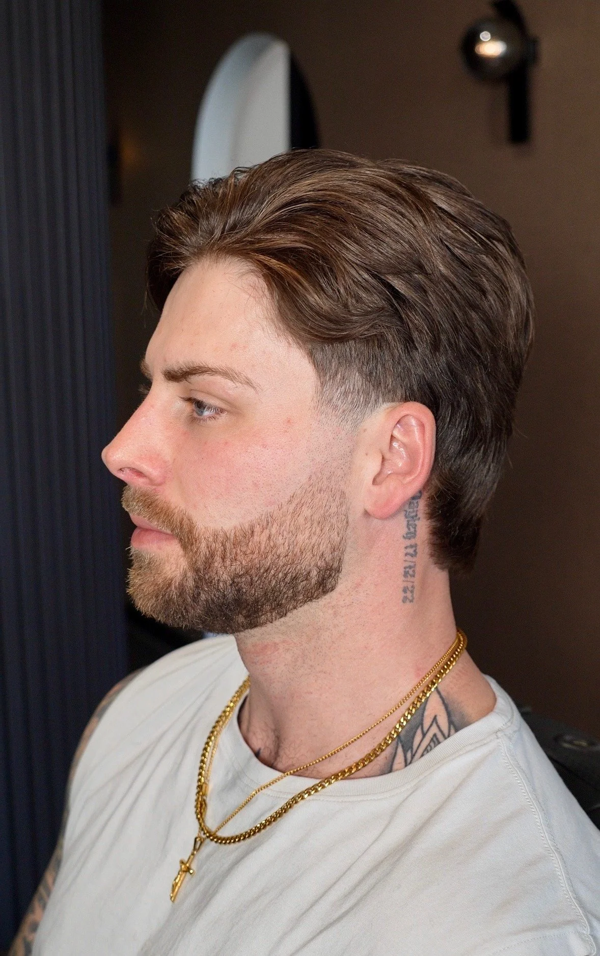 Consult → tailored cut/fade → beard/line work → style set → optional brow tidy → product recommendations that make sense.Book now